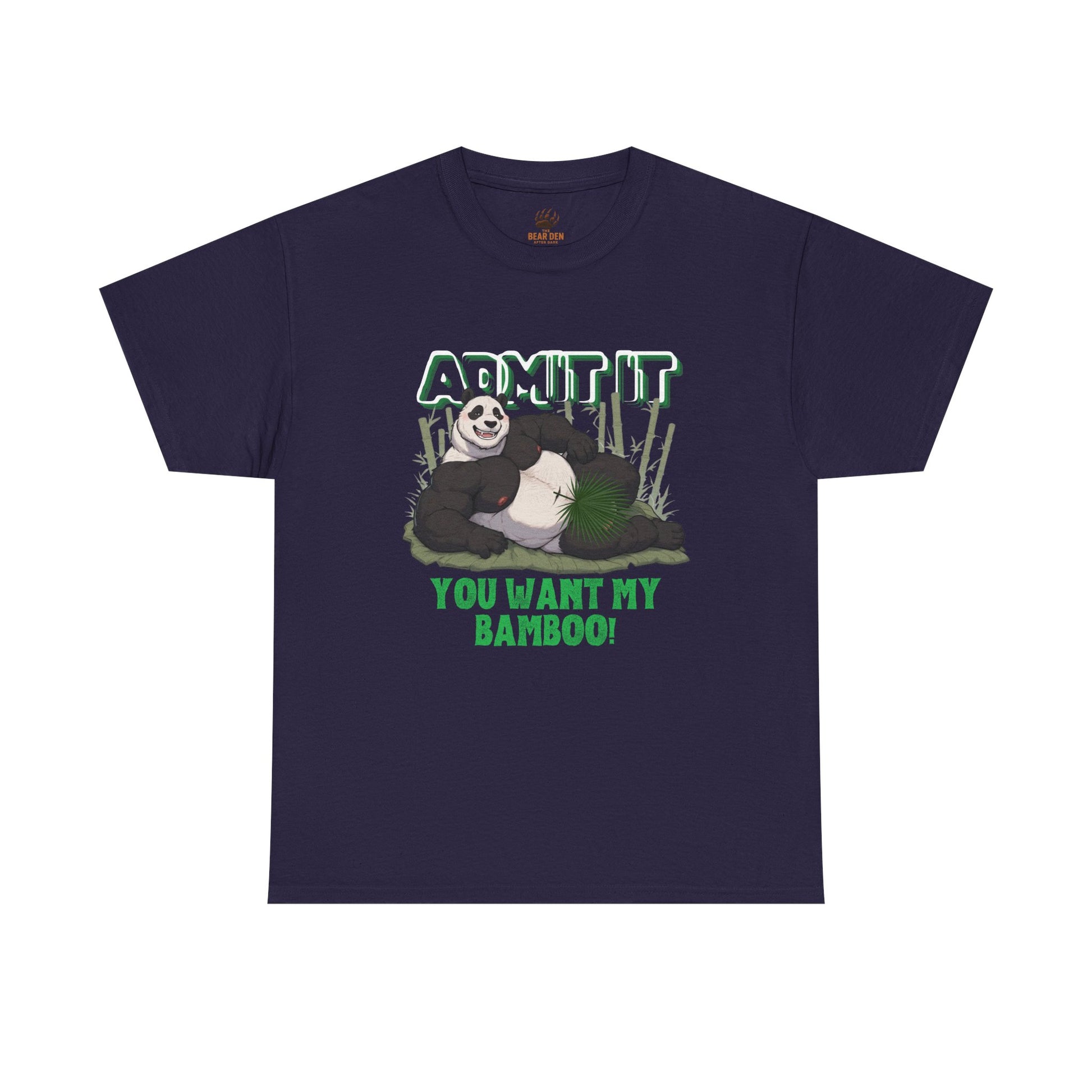 If you love playful innuendo, thick bear energy, and cheeky furry humor, this tee is about to become your new favorite conversation starter. Featuring the daring slogan “Admit It — You Want My Bamboo”, this shirt leans into mischievous panda charm with just the right amount of filthy humor to make heads turn and spark laughs.